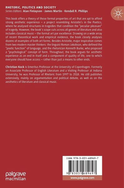 This book offers a theory of those formal properties of art that are apt to afford strong aesthetic experience - a project resembling Aristotle's in the Poetics, where he analysed structures in tragedies that condition the "peculiar pleasure" of tragedy. However, the book's scope cuts across all genres of literature and also includes classical music - the formal art par excellence. Drawing on a wide array of recent theoretical work and empirical evidence, the book closely analyses dozens of examples of both art forms. Besides Aristotle, major inspiration comes from two modern master thinkers: the linguist Roman Jakobson, who defined the "poetic function" of language, and the rhetorician Kenneth Burke, who proposed a "psychological" concept of form. Throughout, the book argues for aesthetic experience as an end in itself and a component of quality of life, one to which everyone should have access - rather than just a means to other ends.