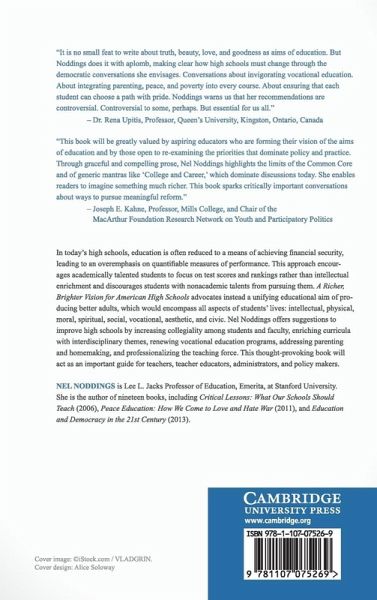 In today's high schools, education is often reduced to a means of achieving financial security, leading to an overemphasis on quantifiable measures of performance. This approach encourages academically talented students to focus on test scores and rankings rather than intellectual enrichment, and discourages students with non-academic talents from pursuing them. A Richer, Brighter Vision for American High Schools advocates instead a unifying educational aim of producing better adults, which would encompass all aspects of students' lives: intellectual, physical, moral, spiritual, social, vocational, aesthetic, and civic. Nel Noddings offers suggestions to improve high schools by increasing collegiality among students and faculty, enriching curricula with interdisciplinary themes, renewing vocational education programs, addressing parenting and homemaking, and professionalizing the teaching force. This thought-provoking book will act as an important guide for teachers, teacher educators, administrators, and policy makers.