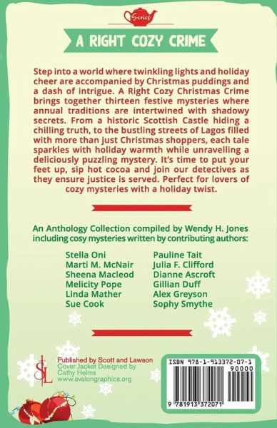 Step into a world where twinkling lights and holiday cheer are accompanied by Christmas puddings and a dash of intrigue. A Right Cozy Christmas Crime brings together thirteen festive mysteries where annual traditions are intertwined with shadowy secrets. From a historic Scottish Castle hiding a chilling truth, to the bustling streets of Lagos filled with more than just Christmas shoppers, each tale sparkles with holiday warmth while unravelling a deliciously puzzling mystery. It's time to put your feet up, sip hot cocoa and join our detectives as they ensure justice is served. Perfect for lovers of cozy mysteries with a holiday twist.