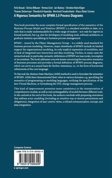 This book provides the most complete formal specification of the semantics of the Business Process Model and Notation 2.0 standard (BPMN) available to date, in a style that is easily understandable for a wide range of readers - not only for experts in formal methods, but e.g. also for developers of modeling tools, software architects, or graduate students specializing in business process management.