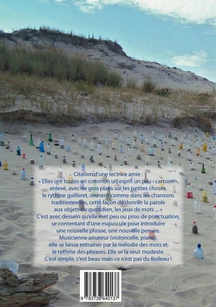 Citation d'une lectrice amie :« Elles ont toutes en commun un esprit un peu ' cartoon ', enlevé, avec de gros plans sur les petites choses, le rythme guilleret, souvent comme dans les chansons traditionnelles, cette façon de donner la parole aux objets du quotidien, les jeux de mots ... »C'est avec dessein qu'elle met peu ou prou de ponctuation, se contentant d'une majuscule pour introduire une nouvelle phrase, une nouvelle pensée. Musicienne amateur (violoncelle, piano), elle se laisse entraîner par la mélodie des mots et le rythme des phrases. Elle se la veut modeste. C'est simple, c'est beau mais ce n'est pas du Boileau !