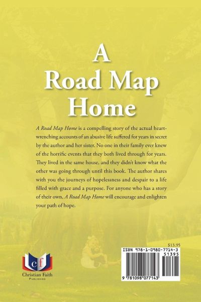 A Road Map Home is a compelling story of the actual heart-wrenching accounts of an abusive life suffered for years in secret by the author and her sister. No one in their family ever knew of the horrific events that they both lived through for years. They lived in the same house, and they didn't know what the other was going through until this book. The author shares with you the journeys of hopelessness and despair to a life filled with grace and a purpose. For anyone who has a story of their own, A Road Map Home will encourage and enlighten your path of hope.