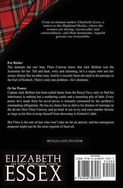 From acclaimed author Elizabeth Essex, a return to the Highland Brides, where the women are daring, resourceful, and extraordinary, and their handsome, roguish grooms are irresistible. For Richer The moment she saw him, Flora Conway knew that Jack Balfour was the Scotsman for her. Tall and dark, witty and charming, he's a rogue who sets her senses aflame like no other man. And he's recently been elevated to the peerage as the Earl of Kinloch. There's only one problem-he's destitute. Or for Poorer Captain Jack Balfour has been called home from the Royal Navy only to find his inheritance is nothing but a moldering castle and a mounting pile of debt. Every penny he's made from his naval prizes is instantly consumed by the earldom's outstanding obligations. He has no choice but to shelve his dreams of marriage to the divine Miss Flora Conway and go back to sea to try and earn another fortune as large as his first to keep himself from drowning in Kinloch's debt. But Flora is the sort of lass who won't take no for an answer, and her outrageous proposal might just be the most roguish of them all. "Elizabeth Essex will dazzle you with her sophisticated blend of vivid historical detail, exquisite characterization and delicious sexual tension." ¿USA Today bestselling author Julianne MacLean "With a lyrical style and a sexy twist, Elizabeth Essex is an author to watch!" ¿Jenna Peterson