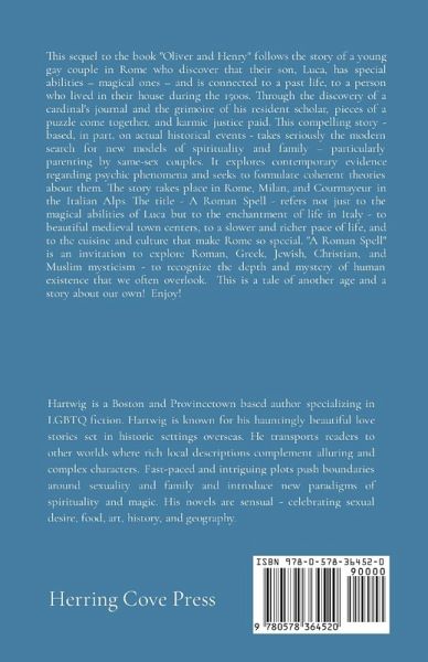 This sequel to the book "Oliver and Henry" follows the story of a young gay couple in Rome who discover that their son, Luca, has special abilities - magical ones - and is connected to a past life, to a person who lived in their house during the 1500s. Through the discovery of a cardinal's journal and the grimoire of his resident scholar, pieces of a puzzle come together, and karmic justice paid. This compelling story - based, in part, on actual historical events - takes seriously the modern search for new models of spirituality and family - particularly parenting by same-sex couples. It explores contemporary evidence regarding psychic phenomena and seeks to formulate coherent theories about them. The story takes place in Rome, Milan, and Courmayeur in the Italian Alps. The title - A Roman Spell - refers not just to the magical abilities of Luca but to the enchantment of life in Italy - to beautiful medieval town centers, to a slower and richer pace of life, and to the cuisine and culture that make Rome so special. "A Roman Spell" is an invitation to explore Roman, Greek, Jewish, Christian, and Muslim mysticism - to recognize the depth and mystery of human existence that we often overlook. This is a tale of another age and a story about our own! Enjoy!