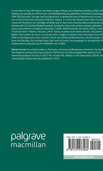 "Martin Garrett's A Romantics Chronology, 1780-1832 focuses on key events of the romantic period. Garrett's work is extraordinary in the sense that it is published as part of a book series concentrating on the chronology of individual authors. ... a very well-researched and immensely resourceful book that provides quick insights into the romantic period. Its power to contextualise particular events turns it into an indispensable source for all students and scholars of romantic literature and culture." (Ralf Haekel, The Coleridge Bulletin, Vol. 50, 2017)
