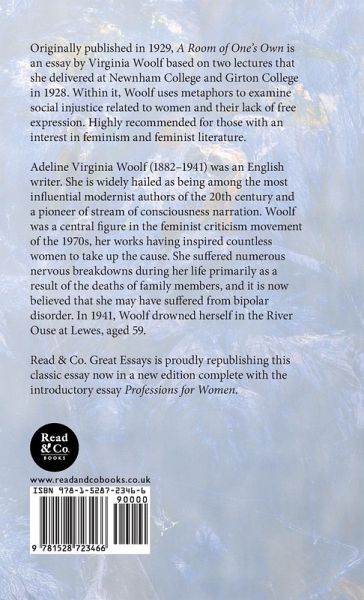 One of the most poignant feminist writings of the twentieth century, this extended essay explores the limits women face as writers in a male-dominated society. Virginia Woolf draws on female writers of the past, including Jane Austen and the Brontë sisters, while also considering fictional characters and lesser-known women in literary history. Noting women's struggles, including their lack of intellectual freedom and financial independence, Woolf discusses the necessity for equal rights in the workplace and beyond. She states that in order for women to succeed creatively, they must have both a literal and figural space in the workplace. 'A woman must have money and a room of her own if she is to write fiction.' First published in 1929, this essay stemmed from a 1928 lecture Woolf gave at the University of Cambridge and grew into a touchstone text in feminist literature and philosophy.