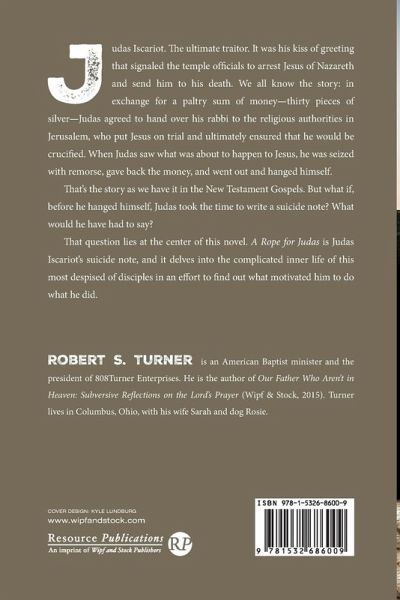 Judas Iscariot. The ultimate traitor. It was his kiss of greeting that signaled the temple officials to arrest Jesus of Nazareth and send him to his death. We all know the story: in exchange for a paltry sum of money--thirty pieces of silver--Judas agreed to hand over his rabbi to the religious authorities in Jerusalem, who put Jesus on trial and ultimately ensured that he would be crucified. When Judas saw what was about to happen to Jesus, he was seized with remorse, gave back the money, and went out and hanged himself. That's the story as we have it in the New Testament Gospels. But what if, before he hanged himself, Judas took the time to write a suicide note? What would he have had to say? That question lies at the center of this novel. A Rope for Judas is Judas Iscariot's suicide note, and it delves into the complicated inner life of this most despised of disciples in an effort to find out what motivated him to do what he did.
