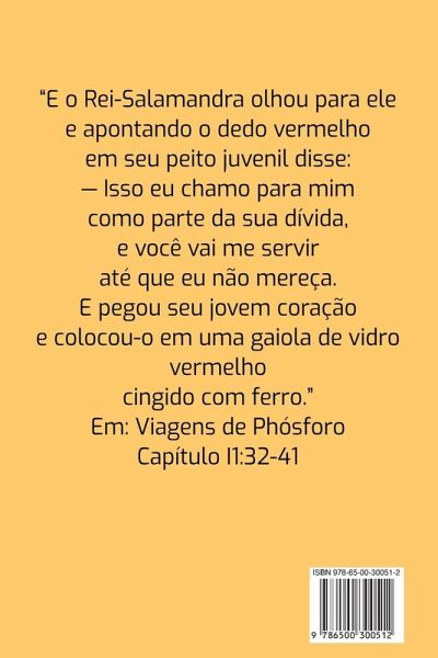 E o Rei-Salamandra olhou para ele e apontando o dedo vermelho em seu peito juvenil disse: Isso eu chamo para mim como parte da sua d vida,