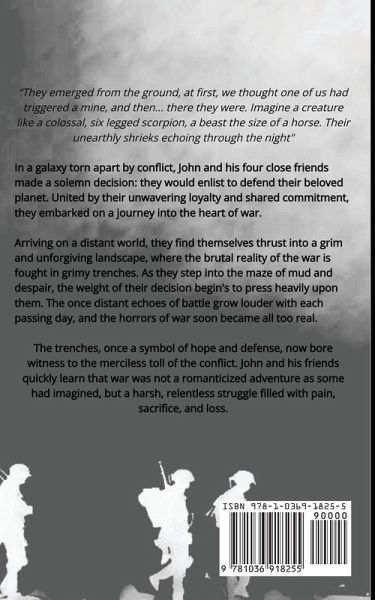 In a galaxy torn apart by conflict, John and his four close friends made a solemn decision: they would enlist to defend their beloved planet. United by their unwavering loyalty and shared commitment, they embark on a journey into the heart of war. Arriving on a distant world, they find themselves thrust into a grim and unforgiving landscape, where the brutal reality of the war is fought in grimy trenches. As they step into the maze of mud and despair, the weight of their decision begin's to press heavily upon them. The once distant echoes of battle grow louder with each passing day, and the horrors of war soon became all too real. The trenches, once a symbol of hope and defense, now bore witness to the merciless toll of conflict. John and his friends quickly learn that war was not a romanticized adventure as some had imagined, but a harsh, relentless struggle filled with pain, sacrifice, and loss.