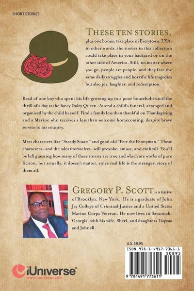 These ten stories, plus one bonus, take place in Everytown, USA; in other words, the stories in this collection could take place in your backyard or on the other side of America. Still, no matter where you go, people are people, and they face the same daily struggles and horrific life tragedies but also joy, laughter, and redemption. Read of one boy who spent his life growing up in a poor household until the thrill of a day at the fancy Dairy Queen. Attend a child's funeral, arranged and organized by the child herself. Find a family less than thankful on Thanksgiving and a Marine who receives a less than welcome homecoming, despite brave service to his country. Meet characters like "Steady Stuart" and good old "Pete the Pennyman." These characters-and the tales themselves-will provoke, amuse, and enthrall. You'll be left guessing how many of these stories are true and which are works of pure fiction, but actually, it doesn't matter, since real life is the strangest story of them all.