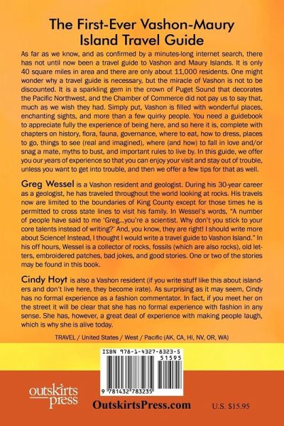 Greg Wessel's ROUGH-HEWN GUIDE TO VASHON AND MAURY ISLANDS, WASHINGTON is the first-ever travel guide to this magical location just a short ferry ride from Seattle. With only 40 square miles of dry land and 11,000 residents, one might wonder why a travel guide is necessary, but the miracle of Vashon is not to be discounted! Included in this delightful book are intimate stories and inside information that will both delight and humor you, including valuable advice from Fashion Maven Cindy Hoyt for how to dress during your visit so that you fit right in (or at least aren%u2019t recognized right off). Vashon and Maury Islands are widely known as the two brightest gems in the crown of Puget Sound that decorates the Pacific Northwest, and the Chamber of Commerce did not pay us to write that, much as we wish they had. Simply put, Vashon is filled with wonderful places to visit, enchanting sights to see, and more than a few quirky people. You need a guidebook to decipher the experience of being here, and so here it is, complete with chapters on history, flora, fauna, governance, where to eat, places to go, things to see (real and imagined), where (and how) to fall in love and/or snag a mate, myths to bust, and important rules to live by. You can learn about the first UFO sighting recorded in the United States (which happened right here), as well as where you can get a decent glass of wine, how to recognize a landslide, and where you can go to church when you%u2019ve been hit by a landslide after drinking too much wine. We give you advice on how to live the good life, how to raise your kids, and even what to do with your dog, not necessarily in that order. There are ghosts you can hunt, mysterious sounds you can listen for, and invasive plants you can kill without getting into trouble. This book will guarantee, more or less, that you will enjoy your visit and stay out of trouble, unless you want to get into trouble, and then we offer a few tips for that as well.