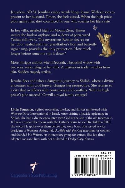 Jerusalem, AD 34. Jerusha desires to bless her husband with sons, descendants from Judah. Will past abuse, miscarriages and the high priest's plot, stop her from raising a royal family?