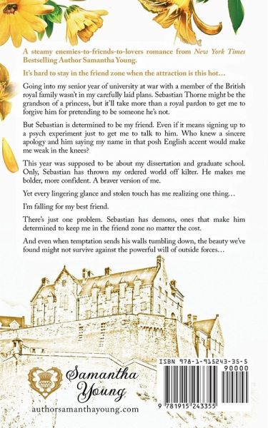 A steamy enemies-to-friends-to-lovers romance from New York Times Bestselling Author Samantha Young. It's hard to stay in the friend zone when the attraction is this hot... Going into my senior year of university at war with a member of the British royal family wasn't in my carefully laid plans. Sebastian Thorne might be the grandson of a princess, but it'll take more than a royal pardon to get me to forgive him for pretending to be someone he's not. But Sebastian is determined to be my friend. Even if it means signing up to a psych experiment just to get me to talk to him. Who knew a sincere apology and him saying my name in that posh English accent would make me weak in the knees? This year was supposed to be about my dissertation and graduate school. Only, Sebastian has thrown my ordered world off kilter. He makes me bolder, more confident. A braver version of me. Yet every lingering glance and stolen touch has me realizing one thing... I'm falling for my best friend. There's just one problem. Sebastian has demons, ones that make him determined to keep me in the friend zone no matter the cost. And even when temptation sends his walls tumbling down, the beauty we've found might not survive against the powerful will of outside forces...