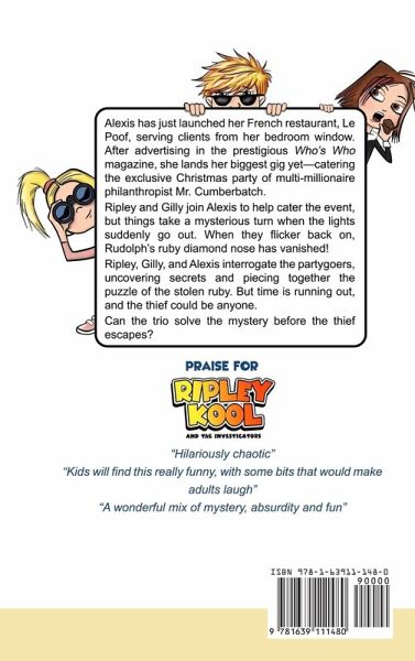 This edition features black-and-white illustrations.A Christmas party, a missing ruby, and a house full of suspects-Ripley, Gilly, and Alexis are on the case in A Rudolph Christmas Mystery! Alexis has just launched her French restaurant, Le Poof, serving clients right from her bedroom window. After advertising in the prestigious Who's Who magazine, she lands her biggest gig yet-catering the exclusive Christmas party of multi-millionaire philanthropist Mr. Cumberbatch. Once a year, Mr. Cumberbatch invites five special guests to pitch their dream projects for funding. Ripley and Gilly join…mehr