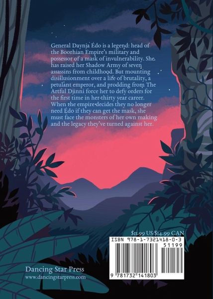 General Daynja Édo is a legend: head of the Boorhian Empire's military and possessor of a mask of invulnerability. She has raised her Shadow Army of seven assassins from childhood. But mounting disillusionment over a life of brutality, a petulant emperor, and prodding from The Artful Djinni force her to defy orders for the first time in her thirty year career. When the empire decides they no longer need Édo if they can get the mask, she must face the monsters of her own making and the legacy they've turned against her.