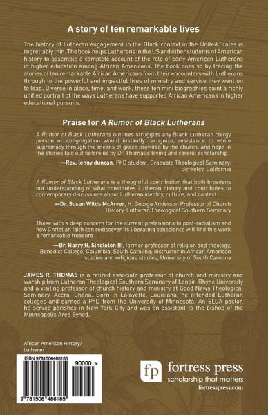The history of Lutheran engagement in the Black context in the United States is regrettably thin. The book helps Lutherans in the US and other students of American history to assemble a complete account of the role of early American Lutherans in higher education among African Americans. The book does so by tracing the stories of ten remarkable African Americans from their encounters with Lutherans through to the powerful and impactful lives of ministry and service they went on to lead. Diverse in place, time, and work, these ten mini biographies paint a richly unified portrait of the ways Lutherans have supported African Americans in higher educational pursuits.