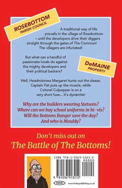 A traditional way of life prevails in the village of Rosebottom until the developers drive their diggers straight through the gates of The Common! The villagers are infuriated! But what can a handful of passionate locals do against the mighty developers and their political backers? Of course, The Rosebottom Village Parish Council, led by retired Headmistress Margaret, rebel in various ways: she hunts out the ministerial sleaze, while retired soldier Captain Pat puts up the military muscle to help Colonel Culpepper lead the fight on the ground. It's the Battle of the Bottoms, and The Colonel is on a very short fuse ... it's dynamite! Why are the builders wearing Stetsons? Where can we buy school uniforms in hi-vis? Will the Bottoms Banger save the day? And who is Mouldy?