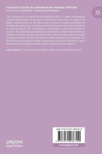 This monograph is a study of the work of British author A. S. Byatt, exploring the cultural representation of the woman intellectual in her fiction. It argues that Byatt's representations of this figure show narratives of intellectual women to be inherently mythopoeic, or capable of restructuring the myth of the intellectual as male by default. This mythopoeia is, furthermore, intrinsically feminist in function, thus potentially broadening the conventional, limited view of women in intellectual history. The book will be the first study of Byatt's work to examine this figure in detail, and the first study of women intellectuals in historical and literary discourse to apply concepts of mythopoeia and sexual difference in ways that allow new readings of women's status and work in public spheres.