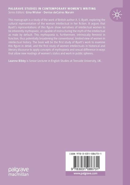 This monograph is a study of the work of British author A. S. Byatt, exploring the cultural representation of the woman intellectual in her fiction. It argues that Byatt's representations of this figure show narratives of intellectual women to be inherently mythopoeic, or capable of restructuring the myth of the intellectual as male by default. This mythopoeia is, furthermore, intrinsically feminist in function, thus potentially broadening the conventional, limited view of women in intellectual history. The book will be the first study of Byatt's work to examine this figure in detail, and the first study of women intellectuals in historical and literary discourse to apply concepts of mythopoeia and sexual difference in ways that allow new readings of women's status and work in public spheres.