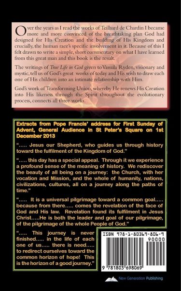 Over the years as I read the works of Teilhard de Chardin I became more and more convinced of the breath-taking plan God had designed for His Creation and the building of His Kingdom and crucially, the human race's specific c involvement in it. Because of this I felt drawn to write a simple, short commentary on what I have learned from this great man and this book is the result. The writings of True Life in God given to Vassula Ryden, visionary and mystic, tell us of God's great works of today and His wish to draw each one of His children into an intimate relationship with Him. God's work of Transforming Union, whereby He renews His Creation into His likeness through the Spirit throughout the evolutionary process, connects all three works.