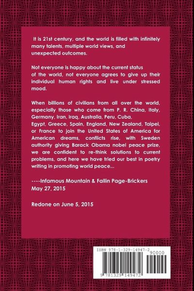 a piece of work that is filled with anticipation, hope, poetic inspirations, and world peace interpretations. it is an excellent book for all to read, ponder, and rethink of love, happiness, and inner peace importance.