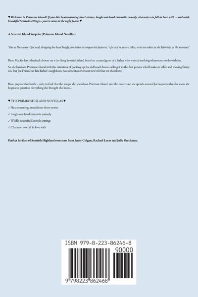 ♥ Welcome to Primrose Island! If you like heartwarming short stories, laugh-out-loud romantic comedy, characters to fall in love with – and wild, beautiful Scottish settings… you've come to the right place! ♥ A Scottish Island Surprise (Primrose Island Novellas) "Far as I'm aware–" Joe said, dropping his head briefly, the better to compose his features, "–far as I'm aware, Miss, we've no rabies in the Hebrides at the moment." Rose Mackie has inherited a house on a far-flung Scottish island from her curmudgeon of a father who wanted nothing whatsoever to do with her. So she lands on Primrose Island with the intention of packing up the old beach house, selling it to the first person who'll make an offer, and moving firmly on. But Joe Fraser, her late father's neighbour, has some inconvenient news for her on that front. Rose prepares for battle – only to find that the longer she spends on Primrose Island, and the more time she spends around Joe in particular, the more she begins to question everything she thought she knew... ♥ THE PRIMROSE ISLAND NOVELLAS ♥ ¿ Heartwarming, standalone short stories ¿ Laugh-out-loud romantic comedy ¿ Wildly beautiful Scottish settings ¿ Characters to fall in love with Perfect for fans of Scottish Highland romcoms from Jenny Colgan, Rachael Lucas and Julie Shackman.