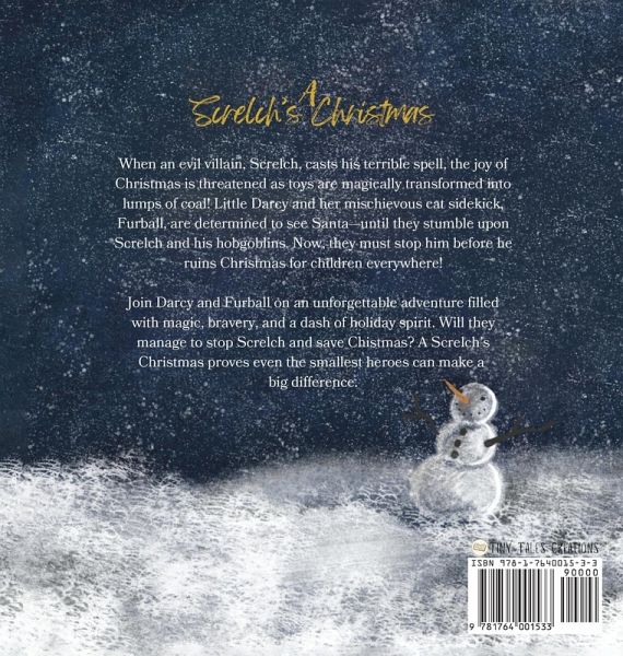 Step aside, Grinch-there's a new Christmas villain in town! Meet Screlch, a mischievous and mysterious creature with a chilling plan to ruin Christmas. A Screlch's Christmas is a spookily whimsical holiday adventure filled with magic, mischief, and the heartwarming spirit of the season. On Christmas Eve, young Darcy and her ever-curious cat, Furball, eagerly await a glimpse of Santa Claus. But instead of sleigh bells and reindeer, they hear something far more sinister-a raspy cackle in the night. To their shock, they discover Screlch, a shadowy figure who prowls the rooftops, turning Christmas presents into lumps of coal with a mere touch! With his eerie sleigh pulled by hobgoblins and dark magic swirling around him, Screlch is determined to ensure no child wakes up to a joyful Christmas morning. But Darcy refuses to let Christmas be stolen. Armed with her bravery, quick thinking, and a touch of holiday magic, she and Furball embark on a daring mission to stop Screlch before it's too late. As they race through the snowy night, they learn that even the darkest magic can't stand against the power of hope, kindness, and the light within. Perfect for families and young readers, A Screlch's Christmas is a thrilling holiday tale that proves even the smallest heroes can make a big difference!