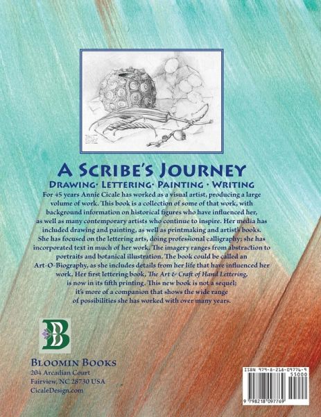 The world of books and writing has captivated Annie Cicale since she was a child. After a short career as a chemical engineer, she turned to the visual arts, specializing in drawing, calligraphy, painting, and printmaking. The visual qualities of writing became her subject matter when she discovered the expressive power of calligraphic forms. She brings visual expression to the words to expand their meaning, using both abstract and illustrative imagery. She is fascinated with the visual nature of text on paper, and she works in both traditional and contemporary ways.With an MFA in graphic design, she has taught lettering, drawing, and painting throughout the United States and Canada, as well as in Japan, Spain and Australia. She has also taught at most of the international calligraphy conferences. She was the co-director of A Show of Hands 2016, the 35th international calligraphy conference, held at Warren Wilson College in Swannanoa, North Carolina.Travels to Europe and Asia have expanded her vision. She has had numerous one-person exhibits of her work in Montana, Tennessee, Illinois and North Carolina. Her work has been included in many calligraphic publications, including Bound & Lettered and Letter Arts Review. Her artist's books are in private and public collections, including Yale University. She is the author of The Art and Craft of Hand Lettering, a 2011 publication of Bloomin Books, with a revised edition produced in 2018.