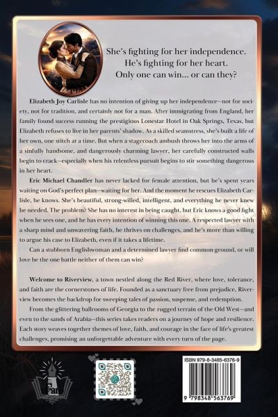 Elizabeth Carlisle has no intention of giving up her independence-not for society, not for tradition, and certainly not for a man. After immigrating from England, her family found success running the prestigious Lonestar Hotel in Oak Springs, Texas, but Elizabeth refuses to live in her parents' shadow. As a skilled seamstress, she's built a life of her own, one stitch at a time. But when a stagecoach ambush throws her into the arms of a sinfully handsome, and dangerously charming lawyer, her carefully constructed walls begin to crack-especially when his relentless pursuit begins to stir something dangerous in her heart. Eric Chandler has never lacked for female attention, but he's spent years waiting on God's perfect plan-waiting for her. And the moment he rescues Elizabeth Carlisle, he knows. She's beautiful, strong-willed, intelligent, and everything he never knew he needed. The problem? She has no interest in being caught, but Eric knows a good fight when he sees one, and he has every intention of winning this one. A respected lawyer with a sharp mind and unwavering faith, he thrives on challenges, and he's more than willing to argue his case to Elizabeth, even if it takes a lifetime. Can a stubborn Englishwoman and a determined lawyer find common ground, or will love be the one battle neither of them can win? ***WARNING***This book is not intended as a stand-alone and it is highly recommended that you read the previous book, A Ranger for An Angel, before you read this one.;-) This book is available for free on my website for joining my email list. Join today and never miss a new release or free book again! Riverview Series: Welcome to Riverview, a town nestled along the Red River, where love, tolerance, and faith are the cornerstones of life. Founded as a sanctuary free from prejudice, Riverview becomes the backdrop for sweeping tales of passion, suspense, and redemption. From the glittering ballrooms of Georgia to the rugged terrain of the Old West-and even to the sands of Arabia-this series takes readers on a journey of hope and resilience. Each story weaves together themes of love, faith, and courage in the face of life's greatest challenges, promising an unforgettable adventure with every turn of the page. Daphanie Austin loves to write Christian romance with swoon-worthy passion, closed-door intimacy, villains that chill, and true-to-life struggles. This isn't your grandmother's Christian romance-it's love, redemption, and faith, boldly reimagined.