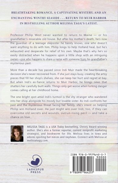 In one evening, Indi's world falls apart. Enter the shy professor her family mistakes for her fiancé . . . Make that ex-fiancé. Professor Philip West never wanted to return to Maine . . . or his grandfather's miserable old house. But after his mother's death, he's now the guardian of a teenage half sister he barely knows-one who doesn't want anything to do with him. He longs to help her heal, but he's exhausted and numb, desperate for relief of his own. Maybe that's why he's so easily distracted when he happens upon the little shop with a name on its storefront window that sounds familiar, a hint of a mystery nudging him inside. More than a decade has passed since Indi Muir made the heartbreaking decision she's never recovered from-though she's certainly tried. She has a full life running her shop and creating the artsy pieces that fill its shelves. If she can just stay busy, she'll keep her hurt and regret at bay. But when her ex-fiancé returns to Muir Harbor, he brings news that shatters her carefully built walls. Things only get worse when lurking danger comes calling at her childhood home. The one bright spot amid Indi's turmoil is the shy stranger who wandered into her shop months ago and his moody but lovable sister. As she confronts her past and the mysterious threat facing her family, she's intent on helping Philip win over his sister. He just might win over Indi, too, if they can overcome old secrets and wounds, outrun rising peril . . . and take a chance on love. Breathtaking romance, a captivating mystery, and an enchanting wintry seaside . . . return to Muir Harbor in bestselling author Melissa Tagg's latest.