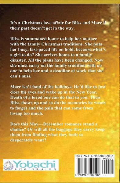 It's a Christmas love affair for Bliss and Marc if their past doesn't rip them apart. When Bliss is summoned home to help her mother with the family's Christmas traditions, she puts her fast-paced life on hold, because what's a girl to do? Marc isn't fond of the holidays. His paralyzed life suits him just fine. He likes living in the numbness. You'll cry, you'll smile, but most of all, you'll feel good-and isn't that what you want from a holiday story?