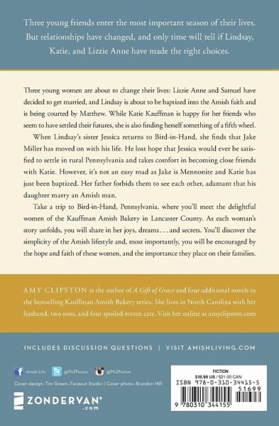 Amy Clipston is the award-winning and best-selling author of the Kauffman Amish Bakery series. Her novels have hit multiple best-seller lists including CBD, CBA, and ECPA. Amy holds a degree in communication from Virginia Wesleyan College and works full-time for the City of Charlotte, NC. Amy lives in North Carolina with her husband, two sons, and four spoiled rotten cats. Visit her online at www.amyclipston.com Facebook: AmyClipstonBooks Twitter: @AmyClipston