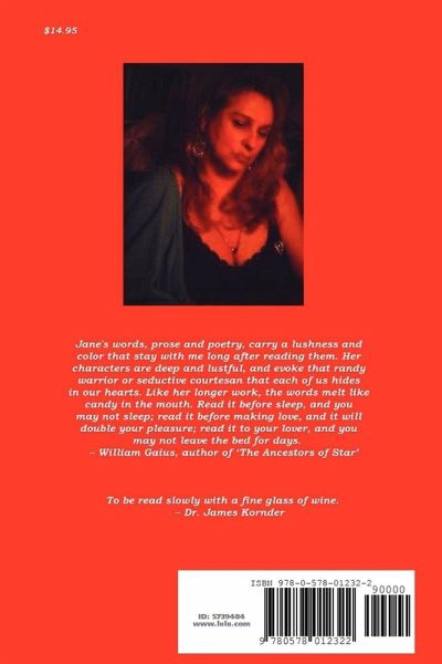 Jane Kohut-Bartels, writer and bellydancer, has woven a magic carpet of poetry, short story and other delightful forms of literary erotica. Japanese forms of poetry, tanka and haiku, free verse, sonnets and other works create a mosaic that will keep you up at nights reading through this book. If not, your dreams will be invaded by particular visions of erotica. As a Turkish/Egyptian trained belly dancer, Jane Kohut-Bartels brings her exotic experiences in dance to her transcendent stories, weaving a particular magic that only well crafted stories can do. She rounds the world with her writings from ancient Japan, to Venice and France in the 18th century and back to the present, entertaining readers with her fertile imagination. How appropriate this book was released to the public February 14th, 2009, Valentine's Day. It is a gift that will stir the senses and gladden the heart.