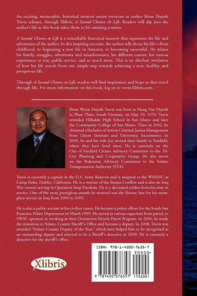 An exciting, memorable, historical memoir awaits everyone as author Brian Huynh Travis releases, through Xlibris, A Second Chance At Life. Readers will dip into the author's life as this book takes them to his amazing journey. A Second Chance at Life is a remarkable historical memoir that represents the life and adventures of the author. In this inspiring account, the author tells about his life-from childhood, to beginning a new life in America, to becoming successful. He relates his family, struggles, adventures and misadventures, his different careers, his various experiences at war, public service, and so much more. This is an absolute revelation of how his life travels from one simple step towards achieving a new, healthy, and prosperous life. Through A Second Chance at Life, readers will find inspiration and hope as they travel through life. For more information on this book, log on to www.Xlibris.com.