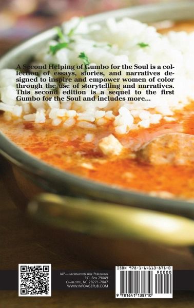 A Second Helping of Gumbo for the Soul is a collection of essays, stories, and narratives designed to inspire and empower women of color through the use of storytelling and narratives. This second edition is a sequel to the first Gumbo for the Soul.