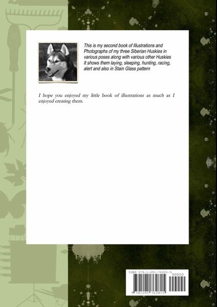 This is Mark Dewolfreys book of Illustrations and Photographs of his three huskies along with several other husky dogs. Showing them laying, sleeping, hunting, racing, on alert as well as stain glass patterns and various other poses.