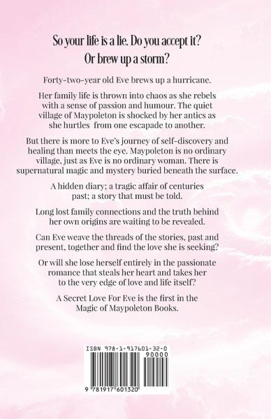 So your life is a lie. Do you accept it? Or brew up a storm? Forty-two-year old Eve brews up a hurricane. Her family life is thrown into chaos as she rebels with a sense of passion and humour. The quiet village of Maypoleton is shocked by her antics as she hurtles from one escapade to another.But there is more to Eve's journey of self-discovery and healing than meets the eye. Maypoleton is no ordinary village, just as Eve is no ordinary woman. There is supernatural magic and mystery buried beneath the surface. A hidden diary; a tragic affair of centuries past; a story that must be told. Long lost family connections and the truth behind her own origins are waiting to be revealed. Can Eve weave the threads of the stories, past and present, together and find the love she is seeking? Or will she lose herself entirely in the passionate romance that steals her heart and takes her to the very edge of love and life itself?