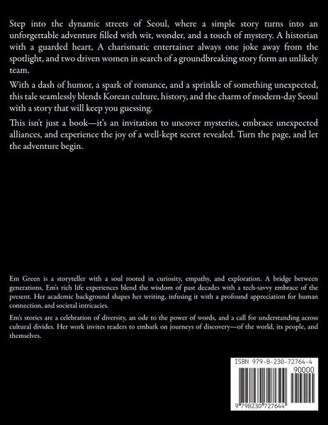 Step into the dynamic streets of Seoul, where a simple story turns into an unforgettable adventure filled with wit, wonder, and a touch of mystery. A historian with a guarded heart, A charismatic entertainer always one joke away from the spotlight, and two driven women in search of a groundbreaking story form an unlikely team. What starts as a professional journey unravels into a labyrinth of riddles, clues, and cultural treasures hidden in plain sight. With a dash of humor, a spark of romance, and a sprinkle of something unexpected (you'll see), this tale seamlessly blends Korean culture, history, and the charm of modern-day Seoul with a story that will keep you guessing. Perfect for fans of K-Dramas, clever puzzles, and stories where friendships grow against all odds - Seoul Searching invites you to laugh, think, and explore a world rich with meaning. This isn't just a book-it's an invitation to uncover mysteries, embrace unexpected alliances, and experience the joy of a well-kept secret revealed. Turn the page, and let the adventure begin.