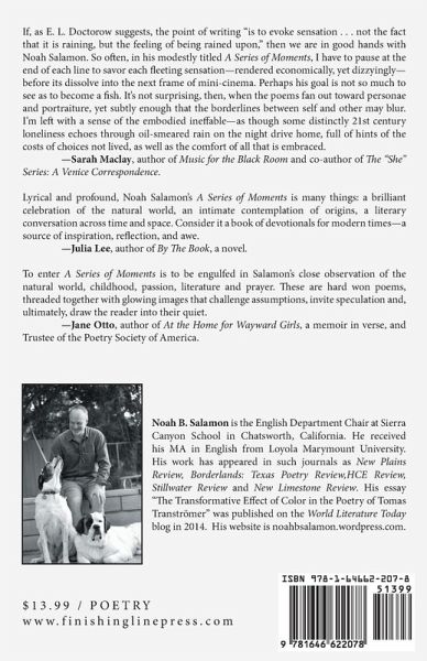 A Series of Moments is a meditation on places in the world and on our place in the world. Taken together, these poems reveal the deep connections we have to the places where we are and have been. As the opening poem suggests, though, the work is "a series of moments" that ring their own notes without the imposition of a larger narrative framework.