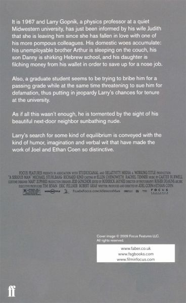 It is 1967 and Larry Gopnik, a physics professor at a quiet Midwestern university, has just been informed by his wife Judith that she is leaving him since she has fallen in love with one of his more pompous colleagues. His domestic woes accumulate: his unemployable brother Larry is sleeping on the couch, his son Danny is playing hooky from Hebrew school, and his daughter is sneaking money from his wallet in order to save up for a nose job. Also, a graduate student seems to be trying to bribe him for a passing grade while at the same time threatening to sue him for defamation, thus putting in jeopardy Larry's chances for tenure at the university. As if all this wasn't enough, he is tormented by the sight of his beautiful next door neighbor sunbathing nude. Larry's search for some kind of equilibrium is conveyed with the kind of humor, imagination, and verbal wit that have made the work of Ethan and Joel Coen so distinctive.