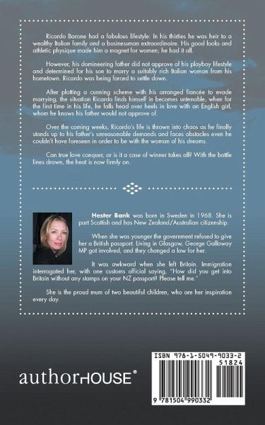 Ricardo Barone had a fabulous lifestyle: In his thirties he was heir to a wealthy Italian family and a businessman extraordinaire. His good looks and athletic physique made him a magnet for women; he had it all. However, his domineering father did not approve of his playboy lifestyle and determined for his son to marry a suitably rich Italian woman from his hometown. Ricardo was being forced to settle down. After plotting a cunning scheme with his arranged fiancée to evade marrying, the situation Ricardo finds himself in becomes untenable, when for the first time in his life, he falls head over heels in love with an English girl, whom he knows his father would not approve of. Over the coming weeks, Ricardo's life is thrown into chaos as he finally stands up to his father's unreasonable demands and faces obstacles even he couldn't have foreseen in order to be with the woman of his dreams. Can true love conquer, or is it a case of winner takes all? With the battle lines drawn, the heat is now firmly on.
