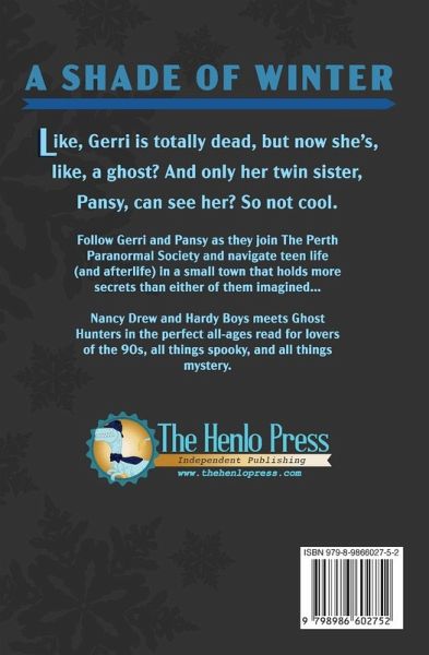 I never imagined that I'd end up being a detective, but this whole being dead thing has really negated that career aptitude test I took in the tenth grade. When my twin sister, Pansy, joined the Perth Paranormal Society, we'd hoped to find out more about my unusual condition. Instead, we quickly realized that the houses we investigated had issues, but those problems weren't caused by ghosts. Together, my sister and I decided to use my particular skill set to help them solve these mysteries. It's so much easier being nosey when you're a ghost. Follow Gerri and Pansy as they join The Perth Paranormal Society and navigate teen life (and afterlife) in a small town that holds more secrets than either of them imagined... Nancy Drew and Hardy Boys meets Ghost Hunters in the perfect all-ages read for lovers of the 90s, all things spooky, and all things mystery.