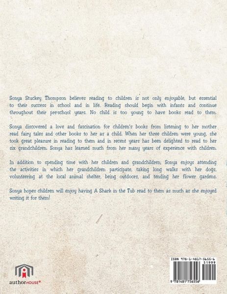 The inspiration for A Shark in the Tub was Sonya's daughter, Tara, who was terrified of getting into the bathtub after seeing the movie, "Jaws". She was in late grade school at the time. Tara's sister, Trish, and brother, Tyler, tormented her by humming the "Jaws" movie theme song! For about a week, Tara would not put her feet in the tub and insisted on straddling the tub sides when showering. She had frightening thoughts of sharks being in the water.