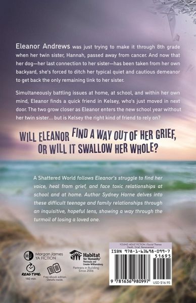 A Shattered World is a dramatic and moving young adult novel told from the eyes of Eleanor, a fourteen year old who struggles to find her voice after losing her twin sister to cancer.