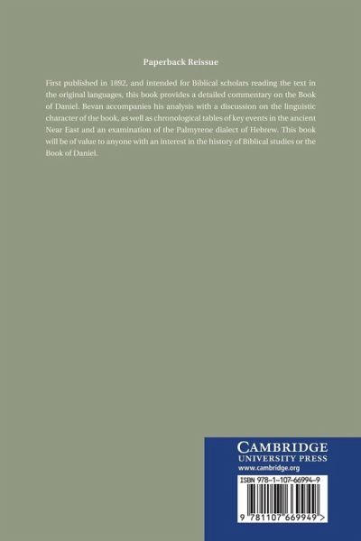 First published in 1892, and intended for biblical scholars reading the text in the original languages, this book provides a detailed commentary on the Book of Daniel. Bevan accompanies his analysis with a discussion on the linguistic character of the book, as well as chronological tables of key events in the ancient Near East and an examination of the Palmyrene dialect of Hebrew. This book will be of value to anyone with an interest in the history of biblical studies or the Book of Daniel.