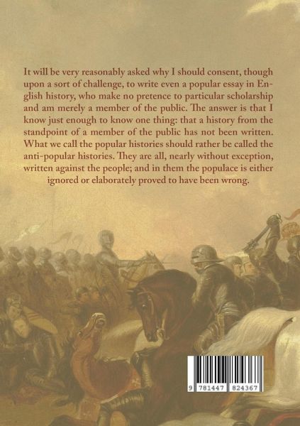 "It will be very reasonably asked why I should consent, though upon a sort of challenge, to write even a popular essay in English history, who make no pretence to particular scholarship and am merely a member of the public. The answer is that I know just enough to know one thing: that a history from the standpoint of a member of the public has not been written. What we call the popular histories should rather be called the anti-popular histories. They are all, nearly without exception, written against the people; and in them the populace is either ignored or elaborately proved to have been wrong."