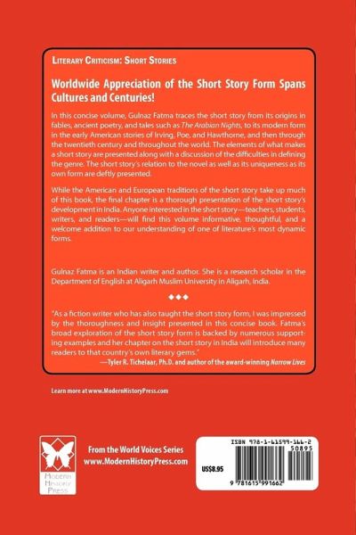 Worldwide Appreciation of the Short Story Form Spans Cultures and Centuries! In this concise volume, Gulnaz Fatma traces the short story from its origins in fables, ancient poetry, and tales such as The Arabian Nights, to its modern form in the early American stories of Irving, Poe, and Hawthorne, and then through the twentieth century and throughout the world. The elements of what makes a short story are presented along with a discussion of the difficulties in defining the genre. The short story's relation to the novel as well as its uniqueness as its own form are deftly presented. While the American and European traditions of the short story take up much of this book, the final chapter is a thorough presentation of the short story's development in India. Anyone interested in the short story--teachers, students, writers, and readers--will find this volume informative, thoughtful, and a welcome addition to our understanding of one of literature's most dynamic forms. Gulnaz Fatma is an Indian writer and author. She is a research scholar in the Department of English at Aligarh Muslim University in Aligarh, India. "As a fiction writer who has also taught the short story form, I was impressed by the thoroughness and insight presented in this concise book. Fatma's broad exploration of the short story form is backed by numerous supporting examples and her chapter on the short story in India will introduce many readers to that country's own literary gems." --Tyler R. Tichelaar, Ph.D. and author of the award-winning Narrow Lives From the World Voices Series www.ModernHistoryPress.com Literary Criticism: Short Stories Literary Criticism: Asian - General