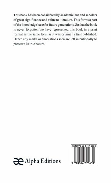 This book has been considered by academicians and scholars of great significance and value to literature. This forms a part of the knowledge base for future generations. So that the book is never forgotten we have represented this book in a print format as the same form as it was originally first published. Hence any marks or annotations seen are left intentionally to preserve its true nature.