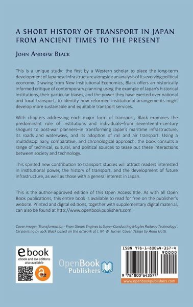 A Short History of Transport in Japan from Ancient Times to the Present is a unique study: the first by a Western scholar to place the long-term development of Japanese infrastructure alongside an analysis of its evolving political economy. Drawing from New Institutional Economics, Black offers an historically informed critique of contemporary planning using the example of Japan's historical institutions, their particular biases, and the power they have exerted over national and local transport, to identify how reformed institutional arrangements might develop more sustainable and equitable transport services. With chapters addressing each major form of transport, Black examines the predominant role of institutions and individuals - from seventeenth-century shoguns to post-war planners - in transforming Japan's maritime infrastructure, its roads and waterways, and its adoption of rail and air transport. Using a multidisciplinary, comparative, and chronological approach, the book consults a range of technical, cultural, and political sources to tease out these interactions between society and technology. This spirited new contribution to transport studies will attract readers interested in institutional power, the history of transport, and the development of future infrastructure, as well as those with a general interest in Japan.