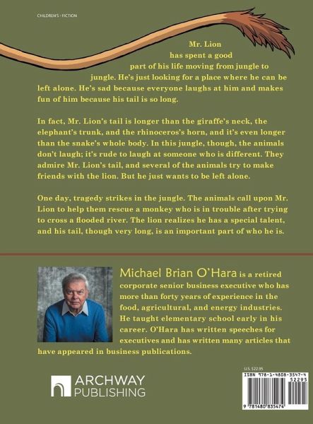 Mr. Lion has spent a good part of his life moving from jungle to jungle. He's just looking for a place where he can be left alone. He's sad because everyone laughs at him and makes fun of him because his tail is so long. In fact, Mr. Lion's tail is longer than the giraffe's neck, the elephant's trunk, and the rhinoceros's horn, and it's even longer than the snake's whole body. In this jungle, though, the animals don't laugh; it's rude to laugh at someone who is different. They admire Mr. Lion's tail, and several of the animals try to make friends with the lion. But he just wants to be left alone. One day, tragedy strikes in the jungle. The animals call upon Mr. Lion to help them rescue a monkey who is in trouble after trying to cross a flooded river. The lion realizes he has a special talent, and his tail, though very long, is an important part of who he is.